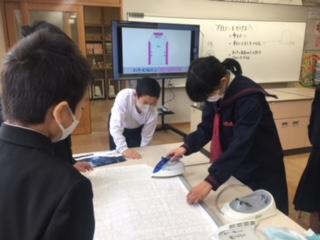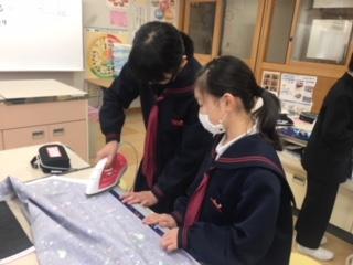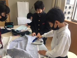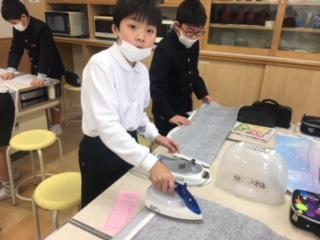 5年生のエプロンづくりが、着々と進んでいます。この日5年2組の子ども達は、布を裁ち、次週ミシンを使って縫うことができるようにアイロンがけをしていました。家で経験した子もいれば慣れぬ手つきの子もいましたが、教え合いながら安全に気を付けて作業していました。