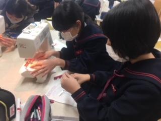 5年生は、3学期の家庭科でミシンを使って学習しています。初めてミシンを使う子もいて、糸を通すだけでも悪戦苦闘しているグループも。エプロン完成のゴール目指して、頑張って下さいね。