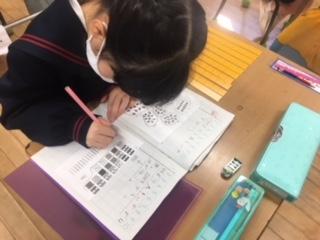 1年生が、算数の時間に「100」の数を学習していました。10のまとまりを作りながら、たくさんの数を数えることができるようになってきた1年生。100より大きい数を勉強する2年生になるために、しっかりと力をつけていきましょうね。