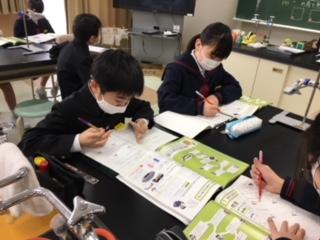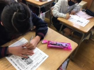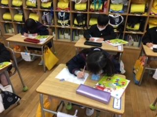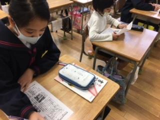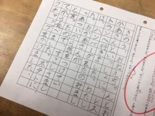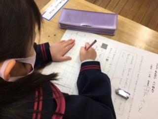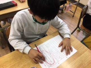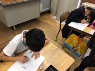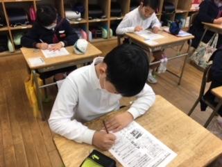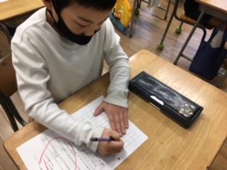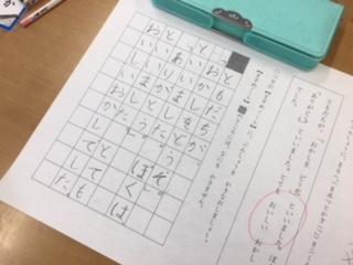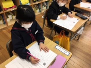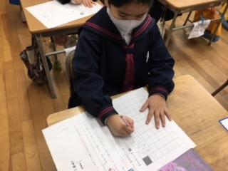 低学年は、マス目を正しく使って書く問題に取り組んでいました。子ども達は、一文字ずつ丁寧な文字で、マス目を確かめながら書いていました。
