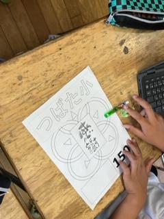 創立150周年記念事業として、6年生が商店街に飾るフラッグの作成に取り掛かりました。