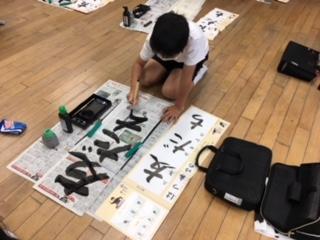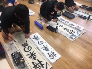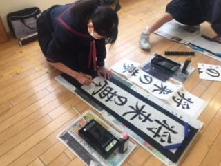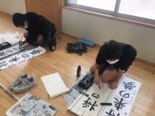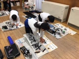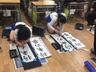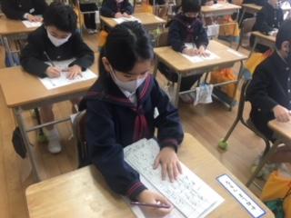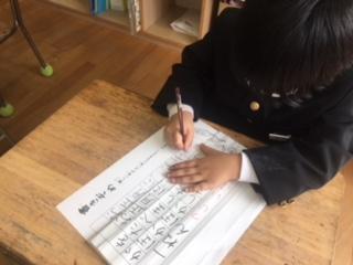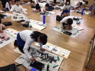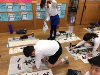 3年生は、今年初めて毛筆の書き初めに挑戦です。床に座って書くのがまだぎこちない様子でしたが、手本を見ながら、真剣に書いていました。