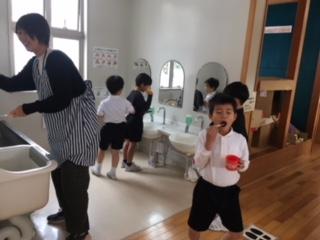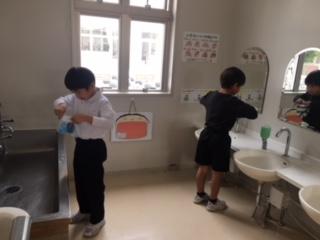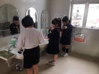 1年生の給食後の歯磨きも、すっかり習慣化してきました。
