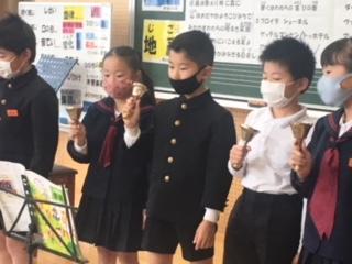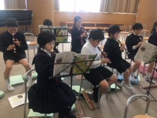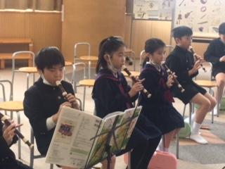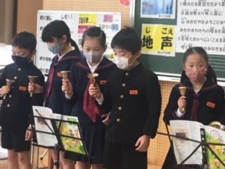 22日(火)ベートーヴェン作曲の今月の歌「よろこびの歌」に合わせて、3年生がハンドベルとリコーダーで演奏していました。素敵な音色に、子ども達から一足早くクリスマスプレゼントをもらったような気持ちになりました。