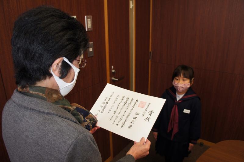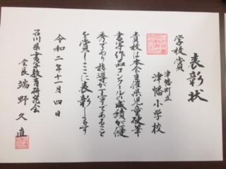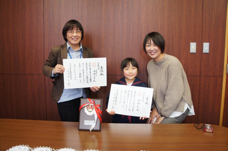 22日(火)県硬筆書写作品コンクール表彰式を応接室で行いました。今年度は、1年児童が審査員特別賞を受賞したのをはじめ、たくさんの児童の作品が入賞したことから「学校賞」も受賞いたしました。これを励みに、自分の思いを美しい文字で伝えられるよう、丁寧に書く指導を継続していきたいと思います。