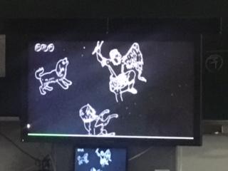17日(木)4年1組の子ども達が、教室を暗くして冬の星座の学習をしていました。テレビに映る星座を一つ一つ確認しながら、暗闇の中で一生懸命記録をしながら学んでいました。