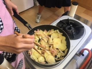 16日(水)6年1組の子ども達が、ジャーマンポテトを作っていました。ジャガイモをゆで、玉ねぎ・ベーコンを切って、どのグループも、美味しく作ろうと相談しながら調理していました。グループで協力する力を、いろんな教科で発揮している6年生。美味しくできて、よかったね!