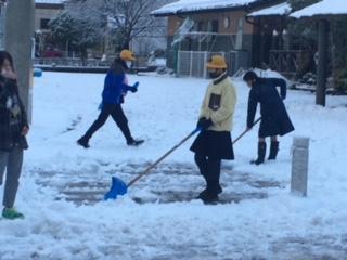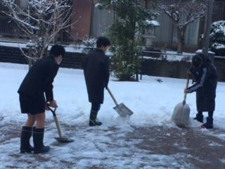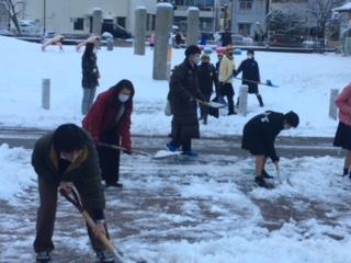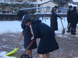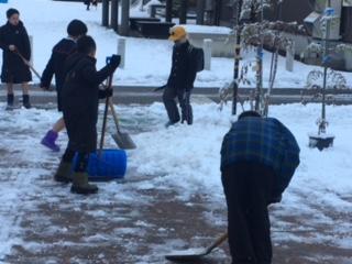 月曜朝の雪かき当番は、6年生。登校した下級生が転ばないようにと、担当の先生方と一緒に、玄関前を排雪してくれました。寒い中、ありがとうございました。