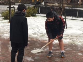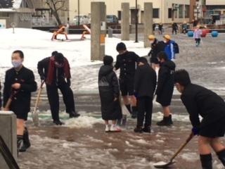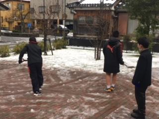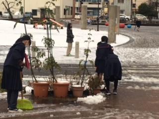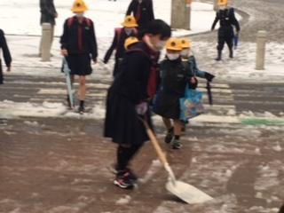 昨晩からの雪が積もり、冷たい朝を迎えましたが今日。雪かき金曜当番の5年2組の子ども達が、玄関の雪を一生懸命に排雪してくれていました。寒い中でしたが、力を合わせ、あっという間にきれいにしてくれました。5年2組の皆さん、朝早くからみんなのためにありがとう!