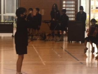 11日(金)昼休みに、5年生の学年発表を行いました。初めの合唱曲「小さい秋見つけた」では、マスクをしての合唱でしたが、しっとりとした歌声に全員が引き込まれ、5年生の思いが伝わり心が揺さぶられました。
