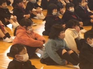 素晴らしい5年生の発表に、全校児童は、最後まで身動きせず、聴き入っていました。