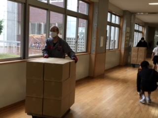 14日(月)Wi-Fiアンテナ設置工事とタブレットの搬入がありました。大きなトラックから荷物が降ろされ、作業教室に運んだり工事をしたりと、来年度からのGIGAスクール構想完全実施に向けて準備が進められました。