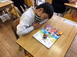 14日(月)1年生が、本校卒業生の金森さんから寄贈いただいたチューリップの球根を植木鉢に植えました。赤・黄・紫・白・ピンクの5色から自分の好きな色を選び、観察カードにスケッチした後、優しく土に植えていました。寒い冬を越して、春きれいな花が咲くのが楽しみですね。