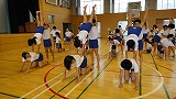 高学年の組体操では,いよいよ大人数での技の練習です。