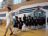 6年生は単独で何回か練習をして、しっかり歩く、おじぎをする、立つ、