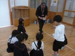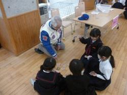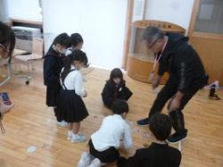 今日の2時間目の時間に、1年生が昔遊び体験をしました。