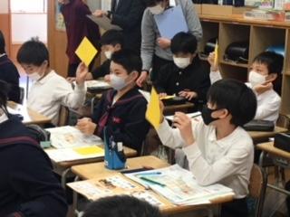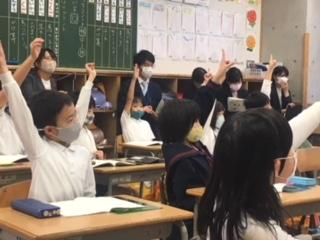 研究主任からは、低学年は「くらべる」中学年は「つなげる」高学年は「すすめる」ことを意識して、学習目標「学び合言葉を使って話す」ことについて話がありました。