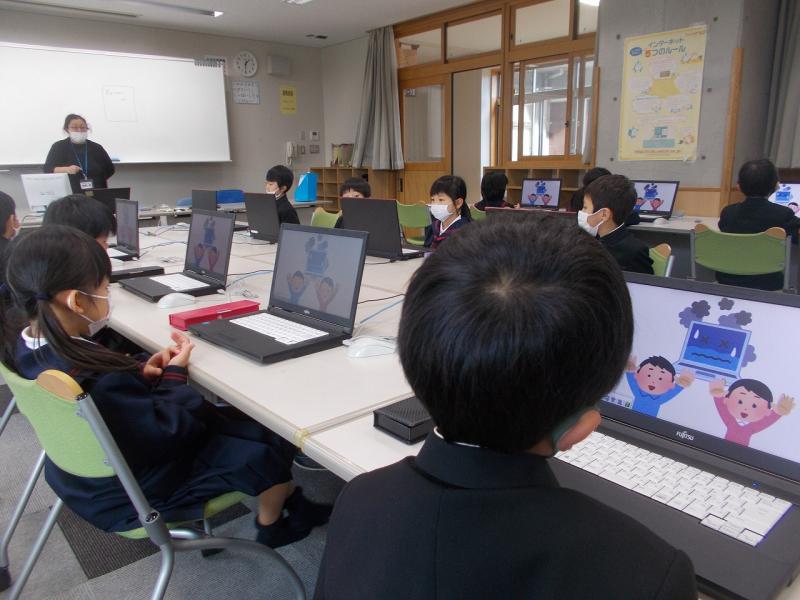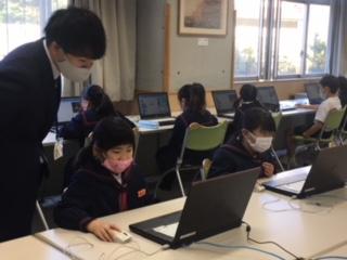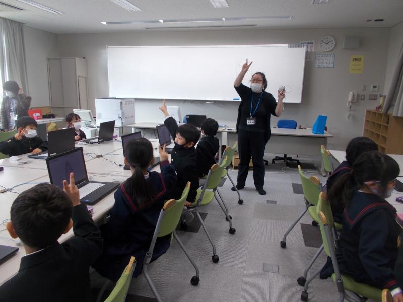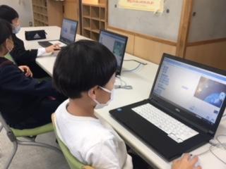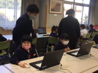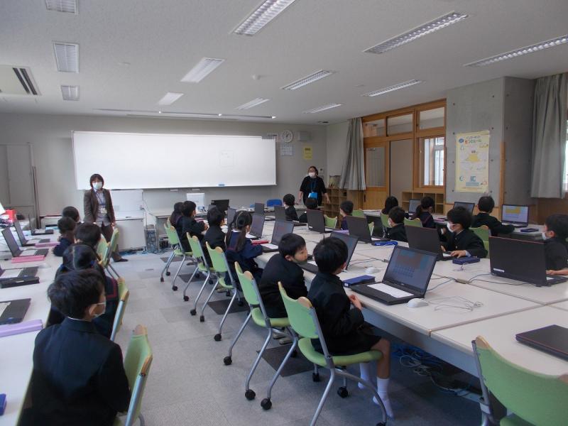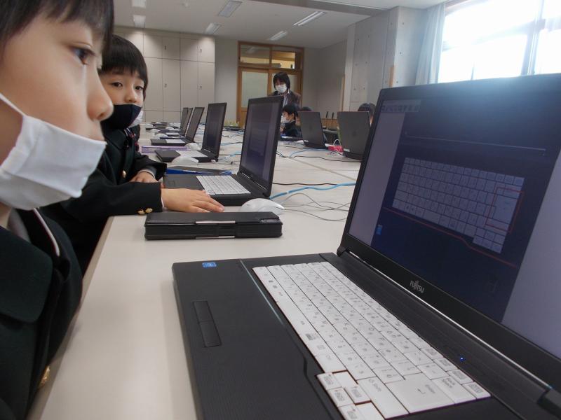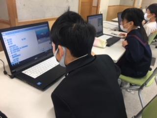 3年生は、ブロックを使って画面の絵を動かすスクラッチの基本を学んでいました。来年度から始まる一人1台端末学習に対応できるように、スキルを身に付けていきたいですね。