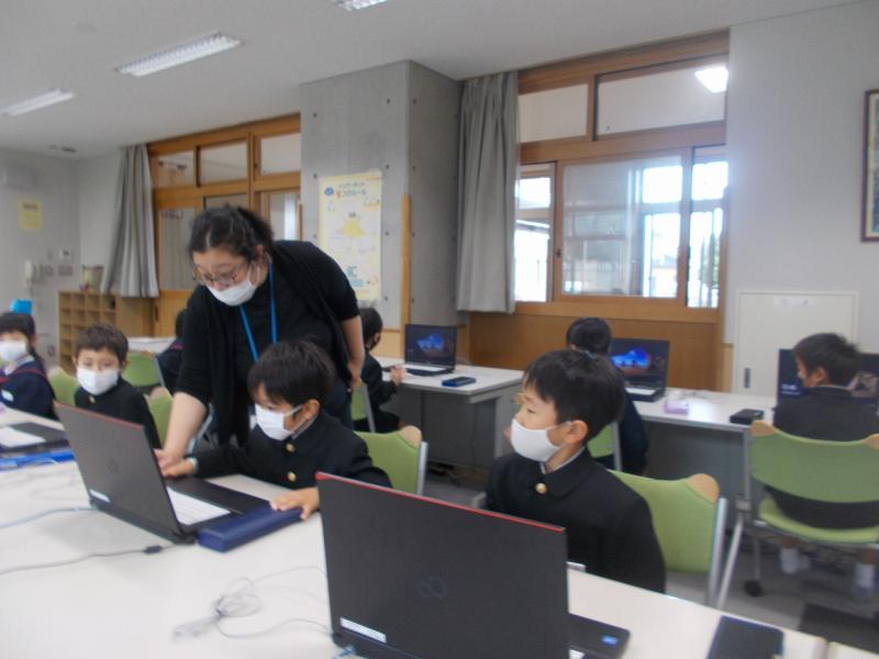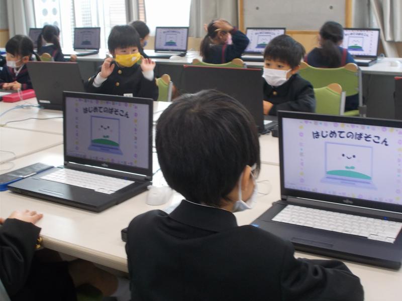 1年生は、この日初めてのパソコン学習だったので、パソコンの約束とマウスの使い方を練習しました。