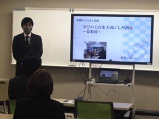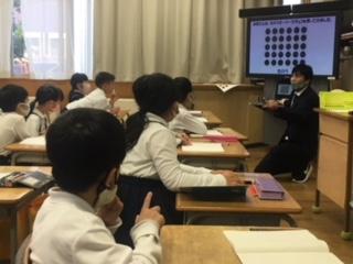 授業後の研修会では、吉田教育長のあいさつの後、授業者である2年1組担任が「学びの土台となる授業づくり」について講義しました。若手教員たちは、「学級経営など教師として大切にしたいことをたくさん学べた。」「明日からの授業で使っていきたい。」と感想を話していました。町若手教員を指導できる優秀な教員がいることも本校の強みです。