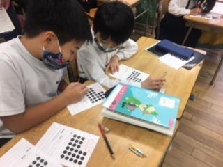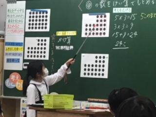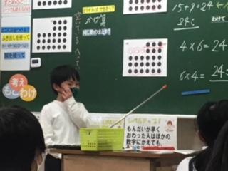 自分で考えた数の求め方は、図を使ってペアで友達に上手に説明をしたり、前に出て発表したりしていました。