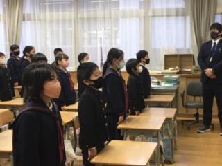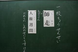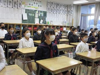 学校長からは、12月4日~10日の「人権週間」を前に、「人はみんな幸せになる権利を持っていて、守られていること」「お互いを理解し、認め合うこと」「理解するためには、話し合ったり見方をかえたりすること必要であり、それを学ぶ場が学校であること」など人権についての話がありました。