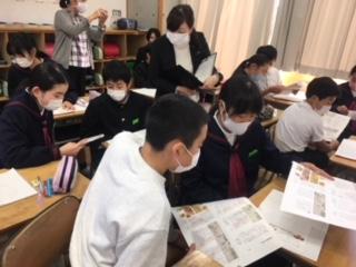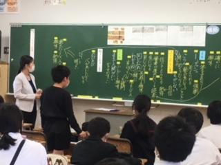 12日(木)金沢教育事務所の指導主事をお迎えして、国語科の研究授業を行いました。子ども達は、学習後に書く日本文化を発信する自分のリーフレットに必要な表現の工夫を教科書の「鳥獣戯画」から見つけ、活用しようと真剣に学んでいました。全員が学習に向き合い、自分の考えを三角ロジックを用いて伝えようとする姿がたくさんあり、さすが6年生という姿でした。