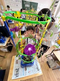「きれいだね」と声をかけると「アサガオ大好きや」と返事が返ってきました。