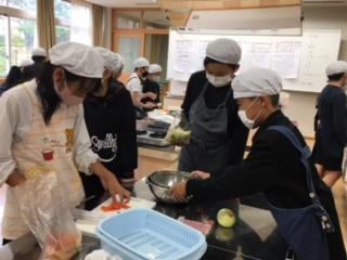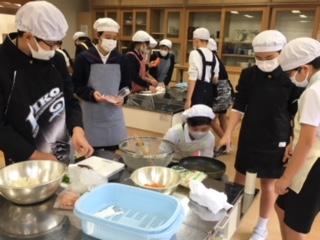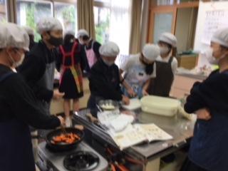4日(水)3・4限目に、6年1組の子ども達が調理実習をしていました。1学期できなかった実習なので、子ども達は意欲満々。それぞれの調理の工程ごとに役割分担し、美味しい野菜炒めになるよう、協力しながら作っていました。