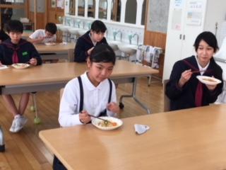 調理後の食事は、ランチルームで。ソーシャルディスタンスを守りながら、しっかりと味を確かめていました。