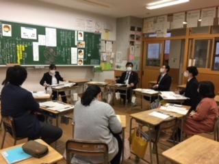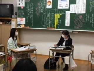 授業後は、ねらいとする価値について更に深めるにはどうすればよかったのか、板書をもとに協議したり指導主事先生から助言いただいたりしました。指導いただいたことを、自分のクラスの道徳授業に生かしていきたいです。