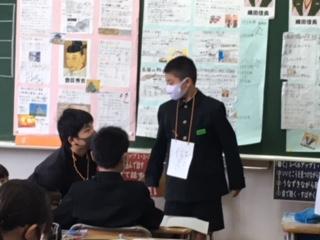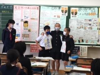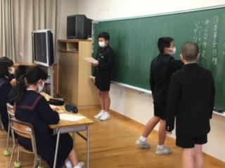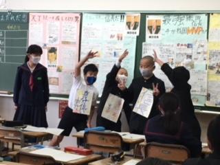 4日(水)6年2組の社会科の授業。これまで調べてきたことを各グループごとに発表していました。より強く自分たちの調べたことをアピールするために、単なる発表でなく、寸劇にしての発表でした。楽市楽座の成立や各武将の部下の登用方法など、グループごとに解釈したことを分かりやすく伝えてくれるので、どの子も納得しながら聞いていました。楽しく学ぶとしっかりと記憶に残り、自分たちの力となりますね。