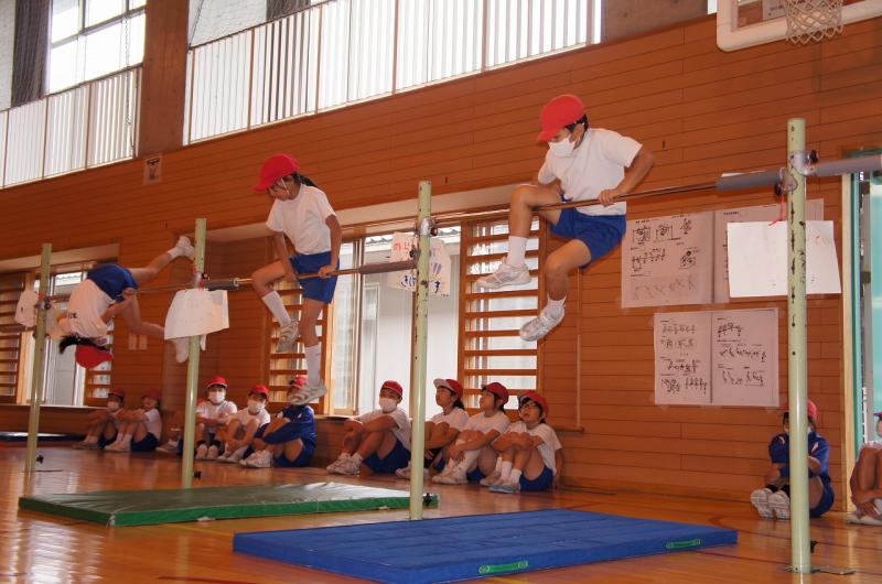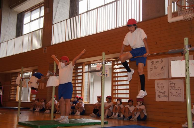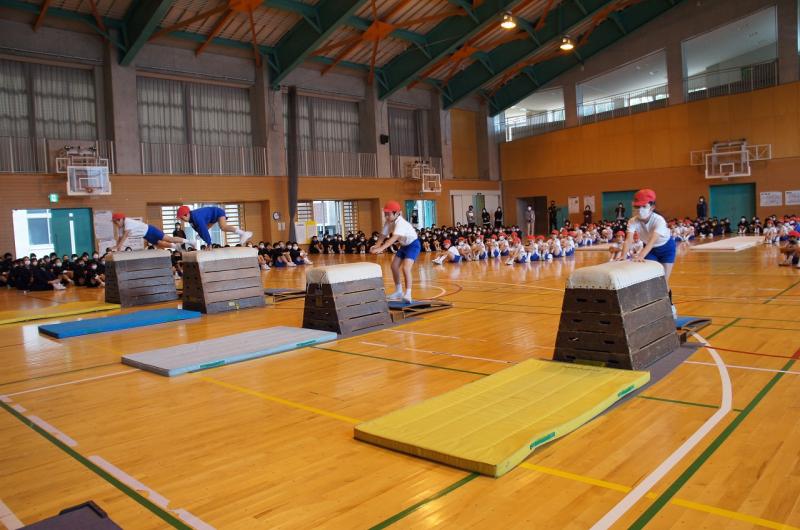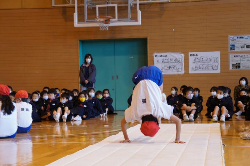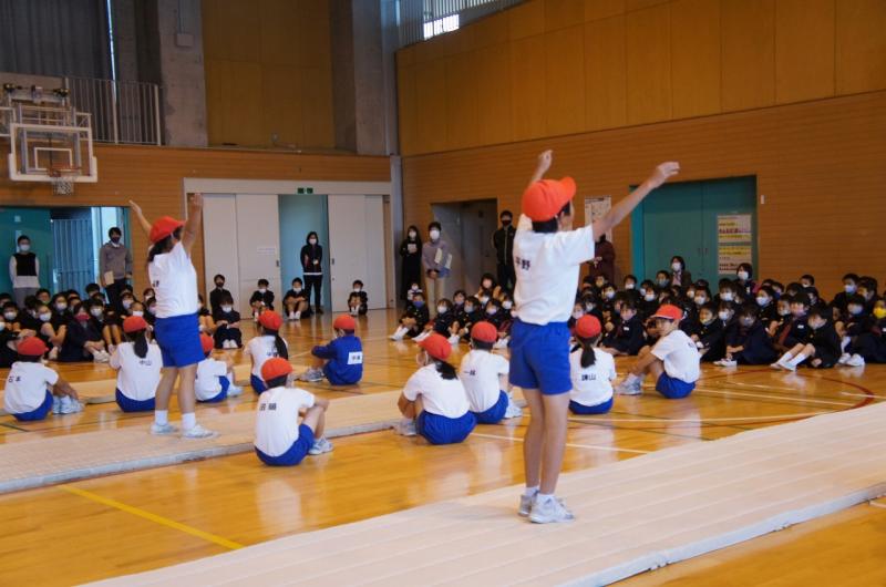 10月30日(金)昼休みに、4年生の器械運動校内発表会を行いました。今年度、町の器械運動交換会は中止となりましたが、例年通りの練習を行い、上達した技や姿を全校児童に披露しました。