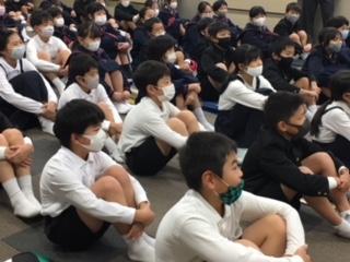毎年4年生が力を付けた姿を3年生に見せて引き継ぐための大切な校内発表会です。3年生は、ステージ上の特等席で「次は僕たちの番!」という意識で、引き継いだ5年生は「がんばれ!」と心の中で応援しながら、4年生の演技を見ていました。