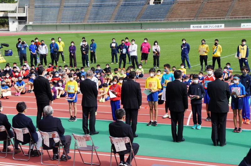 3日(火・祝)金沢市西部緑地公園陸上競技場において開催されたいしかわっ子駅伝。予選会を通った25校のみの大会でしたが、津幡小学校は、男女ともに出場することができました。男子チームも女子チームも力走し、男子は21位・女子は見事2位入賞を果たしました。更に、女子の部では第1区と第3区で区間賞を、女子記録会では5位入賞と、素晴らしい成績を収めることもできました。