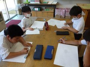 中央に各文字を決め、下書きをし、今日の色塗りとなりました。