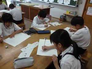 6日の5・6限目に、6年生児童が150周年記念のフラッグ作りを行いました。