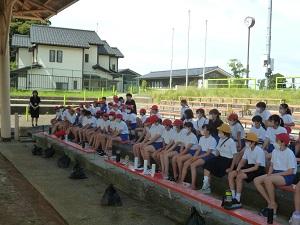 子どもたちは、周りを見ながらもその場に座って静かに耳を傾けていました。