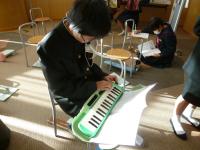 リコーダーや鍵盤ハーモニカ、打楽器やアコーディオンなど、それぞれのパートに分かれての練習です。