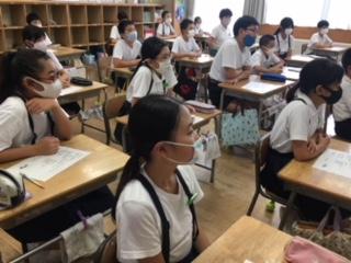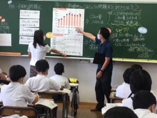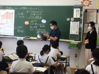 9日(水)4年2組の教室では、津幡町のごみ処理についてどんな問題があり、どう解決しようとしているのかを課題に学んでいました。教科書や資料集だけでは解決できないため、津幡町生活担当課2名をゲストティーチャーにお迎えして、現在の状況や対策について説明を聞きながら学んでいました。実際の現場の方から貴重なお話を聞くことができ、子ども達は真剣な表情で考えていました。町生活担当課の方々、お忙しい中、子ども達の学習に協力いただきありがとうございました。