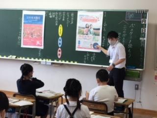 今週3年生の国語科では、ポスターを読む学習をしています。教科書に出ている2枚のポスターを比較し、知らせたい情報を効果的に伝える工夫を学びます。どのクラスでも、実際のポスターも使いながら、学んだことを確認したり深めたりしていました。