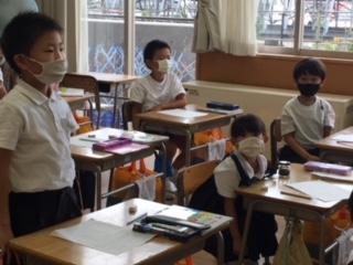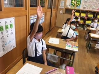 1年生がこれまで毎日水やりを育ててきた朝顔。たくさん花を咲かせ、種もたくさん取れました。この後育ててきた朝顔をどうすればよいか、今週どのクラスでも話し合っています。1年2組では、子どもらしい発想で、いろんな意見を発表していました。一生懸命育ててきた朝顔に愛着をもって、最後まで優しい心で学習を続けてくださいね。