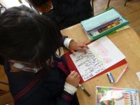 1年生の教室の前は子どもたちの作品が飾ってあってとってもにぎやかです。