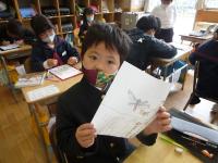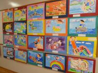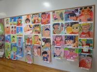 職員室の入り口には4年生の絵画作品が展示してあります。