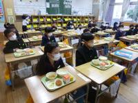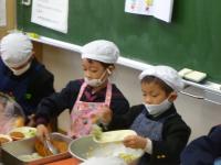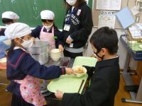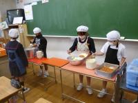 1年生もすっかり準備が上手になりました。スムースに配膳ができるよう、それぞれのクラスで工夫しています。
