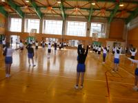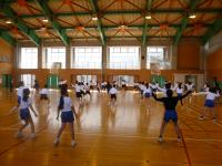 体育館では2年生が8の字とびにチャレンジしています。引っかからないでうまく跳んでいます。