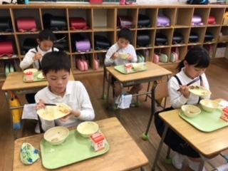 8日(金)今日の給食は、ごはん・ブリの照り焼き・紅白なます・雑煮の「鏡開き献立」でした。年神様の力が宿った鏡餅をいただくことでその力を授けてもらい、1年の無病息災を願うといわれている「鏡開き」。また、鏡餅には「歯固め」という意味もあり、丈夫な歯の持ち主は何でも食べられ長生きできるので、新年の健康と長寿を願い、固くなった鏡餅を食べるとも言われているそうです。豪雪の中、食材を運んでくださった方々にも感謝しながら、みんなでおいしくいただきました。