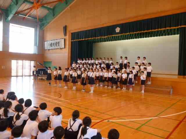 全校児童からの心温まる拍手に、5年生たちもとてもうれしそうでした。