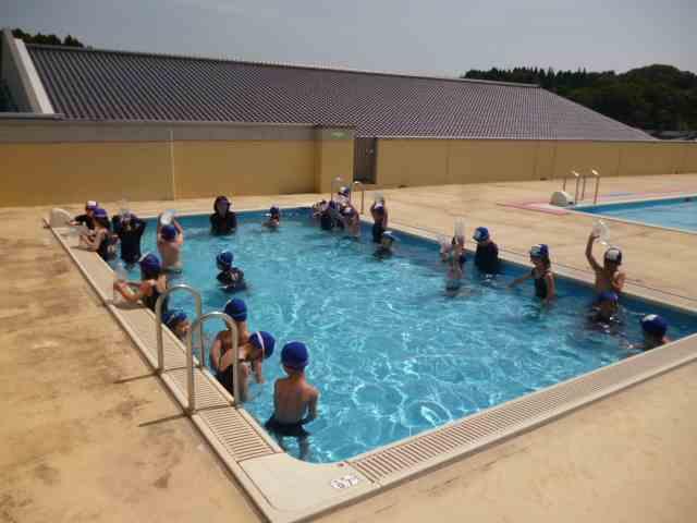 子どもたちは、元気いっぱいに自分の泳ぎがうまくなるようにとプールの授業に取り組んでいます。