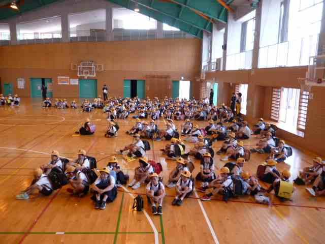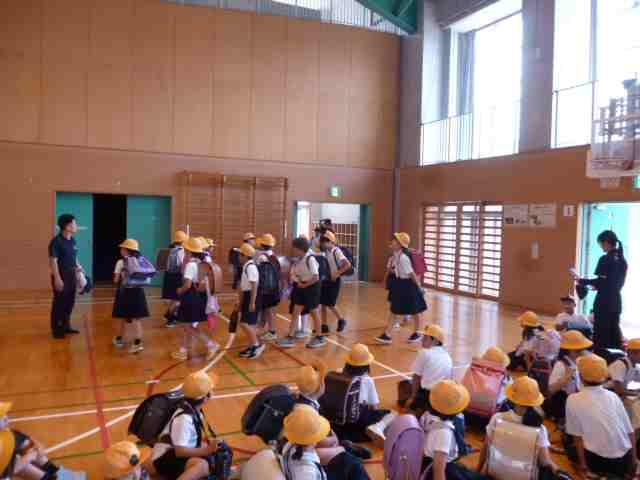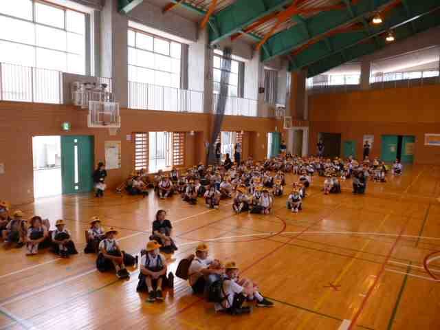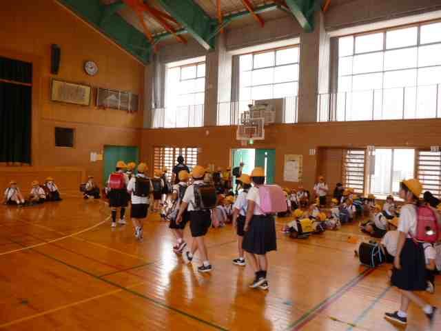体育館で集団下校班の最終確認をし、担当の先生からの安全についてのお話、そして教職員の引率のもと、下校できました。